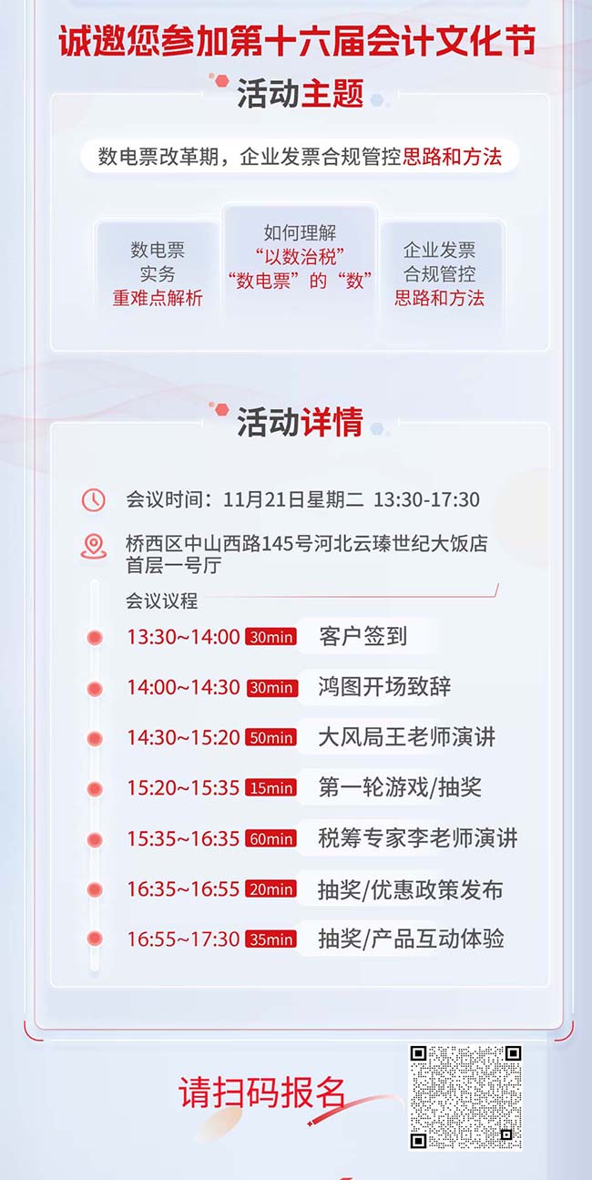 第十六屆會(huì)計(jì)文化節(jié)——石家莊站將在 11 月 21 日云瑧世紀(jì)大飯店盛大開幕!