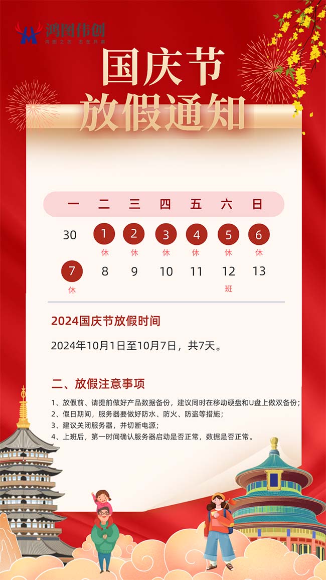 【假期】2024年鴻圖偉創(chuàng)-用友軟件國慶節(jié)放假及值班安排