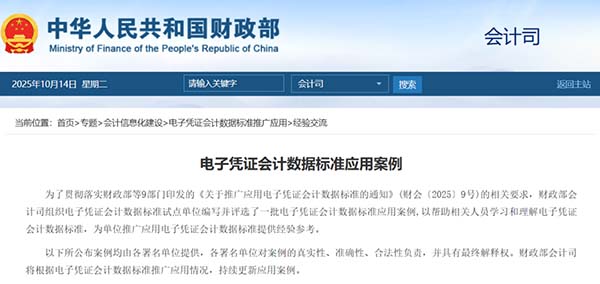 據(jù)石家莊用友了解今年5月,財政部等九部門聯(lián)合發(fā)布《關(guān)于推廣應(yīng)用電子憑證會計數(shù)據(jù)標準的通知》,正式宣告電子憑證會計數(shù)據(jù)標準將在全國范圍內(nèi)推廣應(yīng)用。近日,財政部會計司公布了首批應(yīng)用案例,為各單位學習理解和應(yīng)用新標準提供了實踐參考。這標志著我國財稅無紙化進程進入全面加速階段。