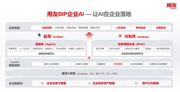2025年8月,YonGPT2.0升級為YonGPT模型矩陣,包括垂類大語言模型、多模態(tài)大模型、向量模型、推薦模型、 分類/排序模型、運籌優(yōu)化/預(yù)測模型等,形成了多類型的靈活模型矩陣。