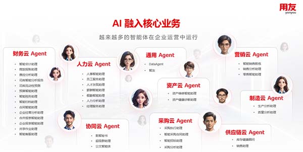 在人力資源領(lǐng)域,用友BIP推出了員工服務(wù)助理、人事智能助理、假勤智能助理、薪酬智能助理、人才發(fā)現(xiàn)助理等通過AI技術(shù)與人力資源大數(shù)據(jù)的深度融合,幫助HR實現(xiàn)從“事務(wù)執(zhí)行者”蛻變?yōu)?ldquo;戰(zhàn)略伙伴”及“變革推動者”。