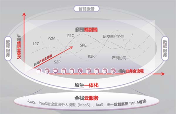 橫向上,用友BIP貫通業(yè)務(wù)與管理的全價值鏈,實(shí)現(xiàn)研、產(chǎn)、供、銷、服全過程的拉通,推動人、財(cái)、物、項(xiàng)、協(xié)全面融合?;诮y(tǒng)一平臺,用友構(gòu)建了覆蓋數(shù)據(jù)架構(gòu)、技術(shù)架構(gòu)和智能體在內(nèi)的十大領(lǐng)域服務(wù),讓企業(yè)最核心的管理真正靠一個底座、一套語言來支撐。
