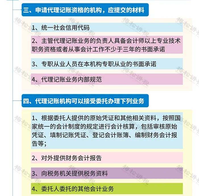 除了要求取得上述兩個(gè)證外, 對(duì)記賬人員、代理機(jī)構(gòu)內(nèi)部管理等都有要求,具體我們準(zhǔn)備了一張導(dǎo)圖,建議收藏: